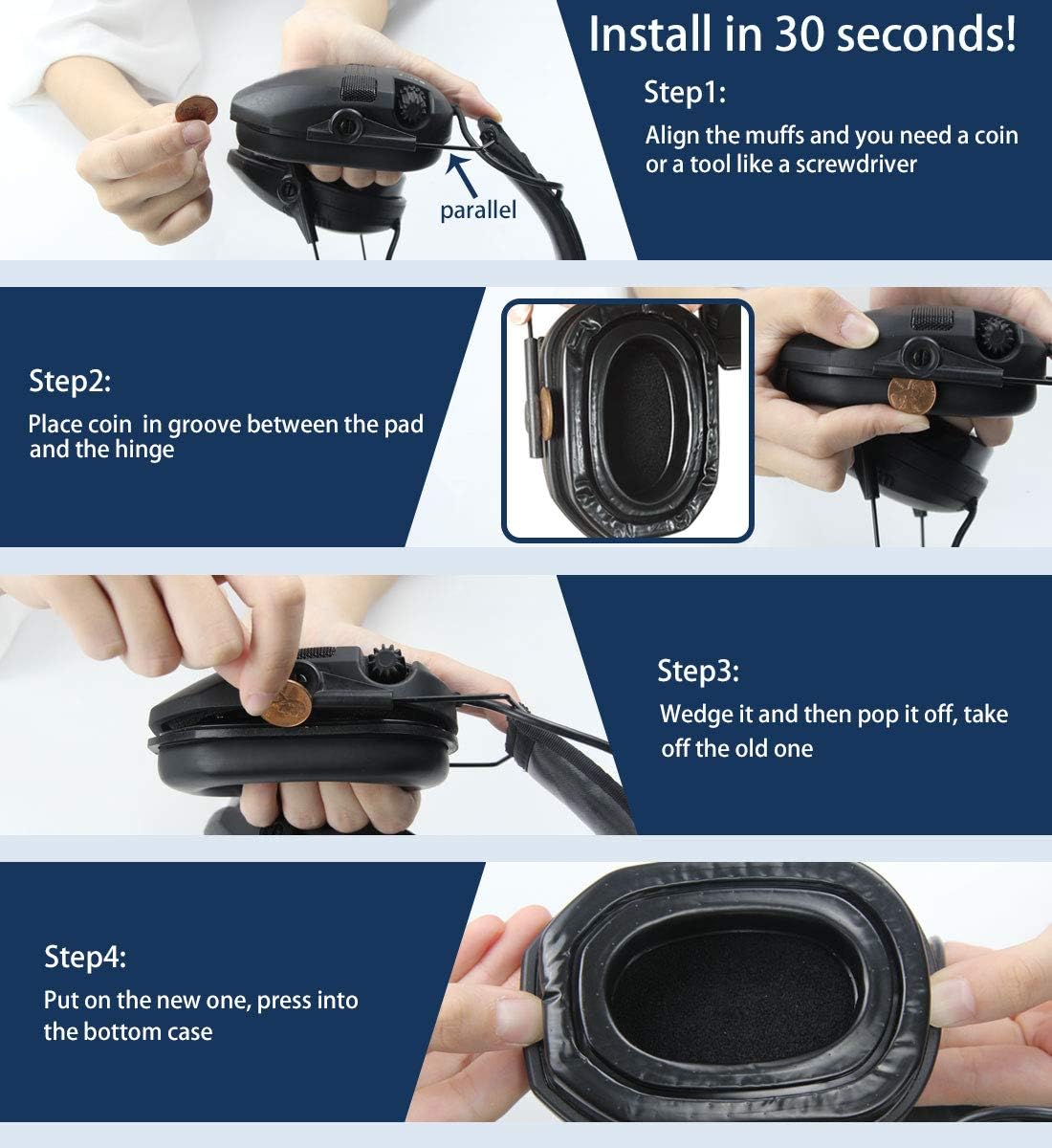 Easy Quick Replace: The ear pad can be replaced in one minute with a small coin without damaging the earphone. We have also taken pictures and videos of how to replace the ear pad, which is very easy to install